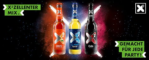 Hol dir die perfekte Partymischung aus Geschmack und modernem Look für Deine Party. Überzeug dich selbst von der frischen Coolness von X² Spritz, X² Ice Boost Energy und X² Cola.